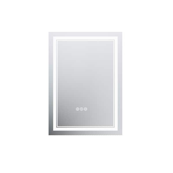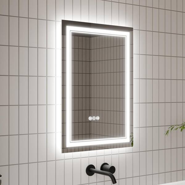 20 in. W x 28 in. H Rectangular Frameless LED Light Anti-Fog Wall Dimmable Mount Bathroom Vanity Mirror in White