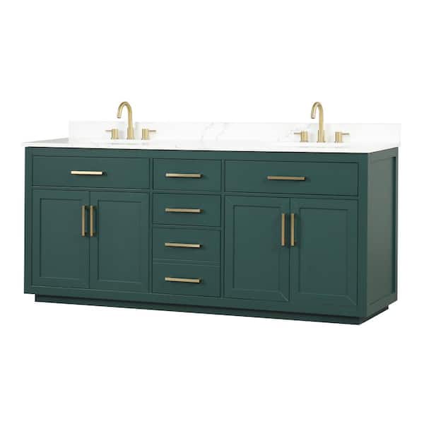 22 in. W. x 80 in. D x 36 in. H Double Sink Freestanding Bath Vanity in Green with White Quartz Top