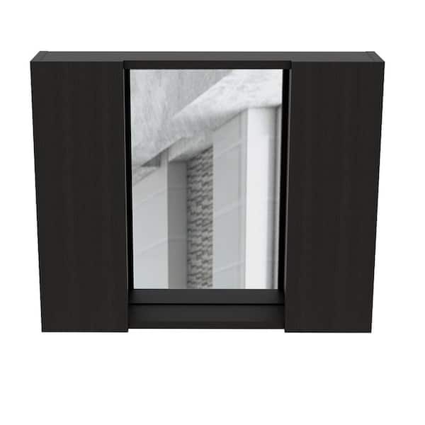 23.6 in. W x 5.4 in. D x 19.5 in. H Rectangular Double Door Medicine Cabinet with Mirror, Seven Shelves, Black