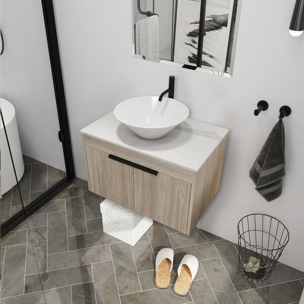30 in. W Float Bathroom Vanity with Basin Set and 2 Parcels in Brown(Khaki), Wall Mounted with Soft Close Door