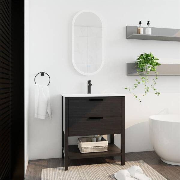30 in. W Modern Elegant Freestanding Bathroom Vanity in Black with 2-Drawers, Ceramic Sink and 1 Shelf