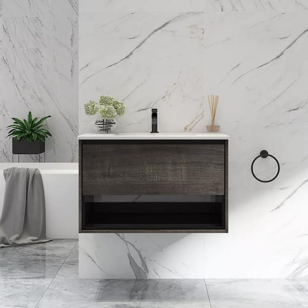 30 in. W x 18 in. D x 20 in. H Bath Vanity in Brown (Plaid Grey Oak) with White Ceramics Top