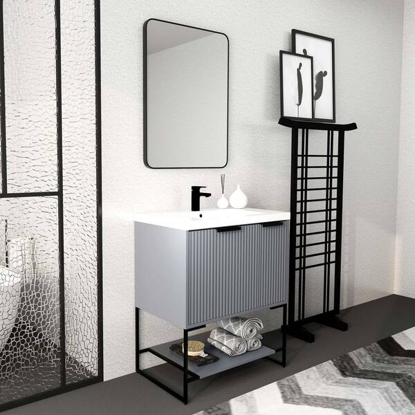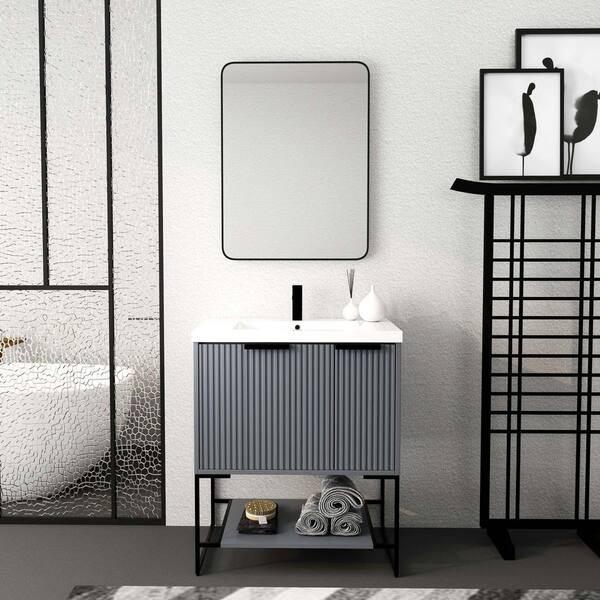 30 in. W x18.10 in. D x 35 in. H Bathroom Vanity In Gray With White Resin Basin Top