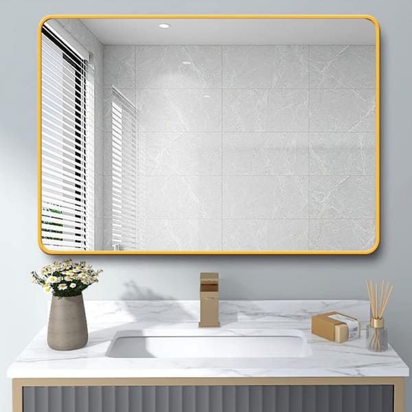 32 in. L x 24 in. H Rectangular Gold Bathroom Wall Mount Vanity Mirror with Rust Resistant Rounded Aluminum Metal Frame