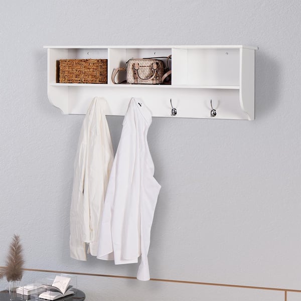 38.9 in. W x 13.8 in. H White Bathroom Wall Cabinet with 4 Dual Hooks