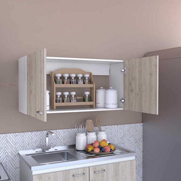 39.3 in. W x 12.6 in. D x 19.3 in. H Bathroom Storage Wall Cabinet, 2-Doors with 2-Shelves in White and Light Gray