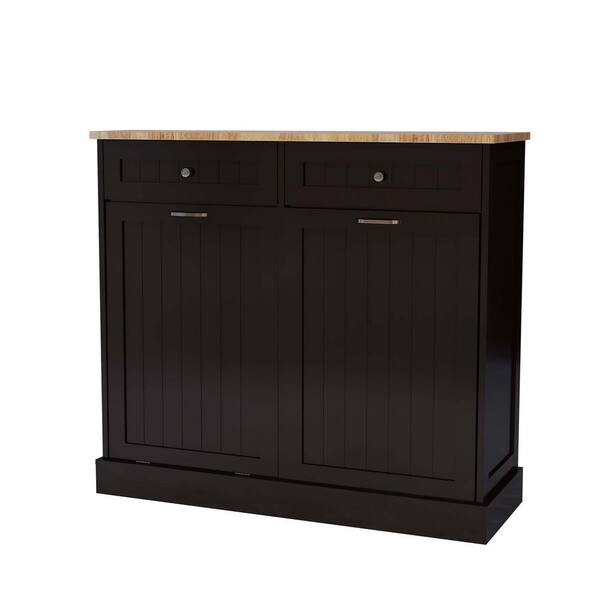 40 in Two-Compartment Tilting Black Kitchen Trash Cabinet with 2 Drawers