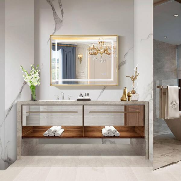 40 in. W x 30 in. H Rectangular Aluminium Alloy Frame Wall Bathroom Vanity Mirror, Over 50,000 Hours Lifespan in Glod