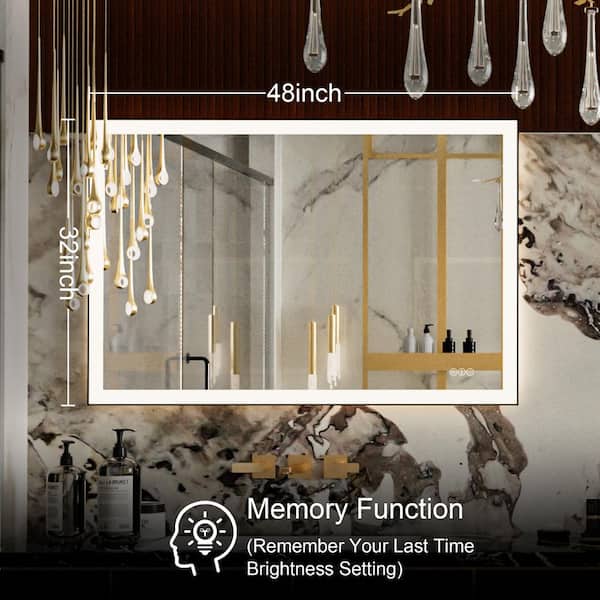 48 in. W x 32 in. H Rectangular Aluminum Framed LED Light with 3-Color and Anti-Fog Wall Mount Bathroom Vanity Mirror