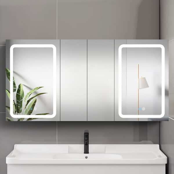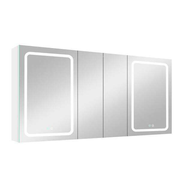 60 in. W x 30 in. H 4-Door Rectangular Aluminum Medicine Cabinet with Mirror in White