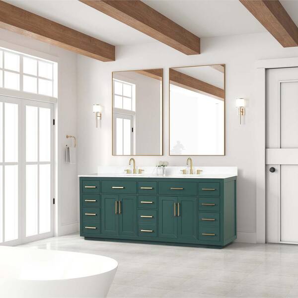 84 in. W x 22 in. D x 36 in. H Double Sink Freestanding Bath Vanity in Green with White Quartz Top
