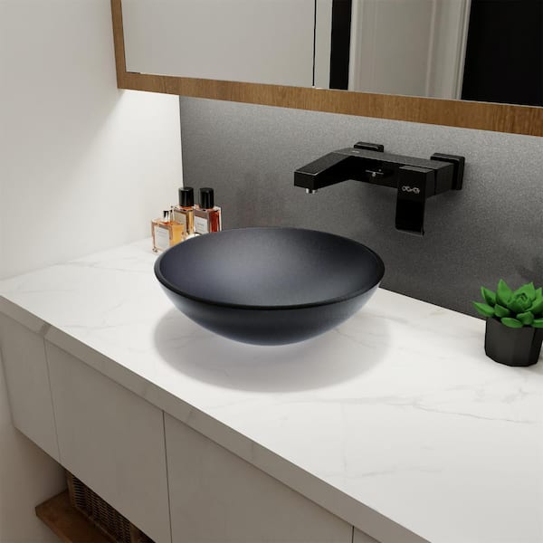 Modern Style Tempered Glass Matte Gray Bathroom Round Vessel Bathroom Sink