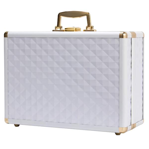 White Portable Rechargeable Cosmetic Case with LED Mirror Lock, Brush Holder and Divider (13.78 in. x 9.84 in. x 6.10in)