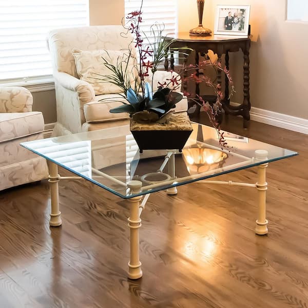 32 in. x 42 in. Clear Rectangle Glass Table Top 3/8 in. Thick Pencil Polish Tempered Touch Corners