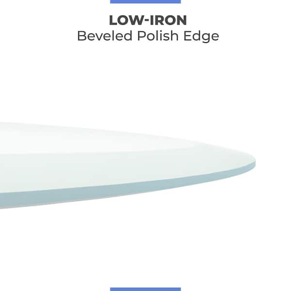 52 in. Round Clear Low Iron Glass Table Top 1/2 In. Thick Beveled Edge Polish Tempered