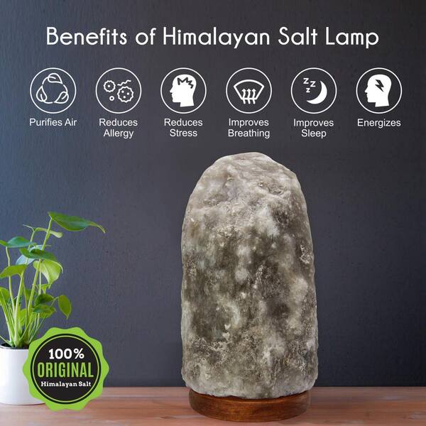 Himalayan Lamp Salt 8 in. 9 lbs. to 10 lbs. Grey Large Crystal Rock Natural Shape with Wood Base Electric Wire and Bulb