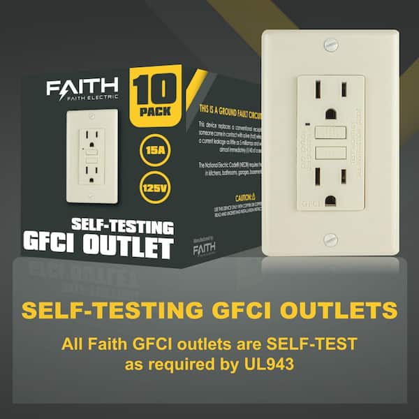 15 Amp 125-Volt GFCI Duplex Outlet Non-Tamper-Resistant GFI Receptacle with LED Indicator, Light Almond (10-Pack)