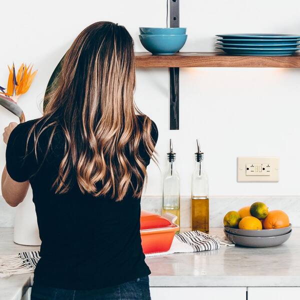 20-Amp 125-Volt GFCI Duplex Tamper Resistant Outlet, GFI Receptacle with Indicator Light and Wall Plate, Ivory (10-Pack)