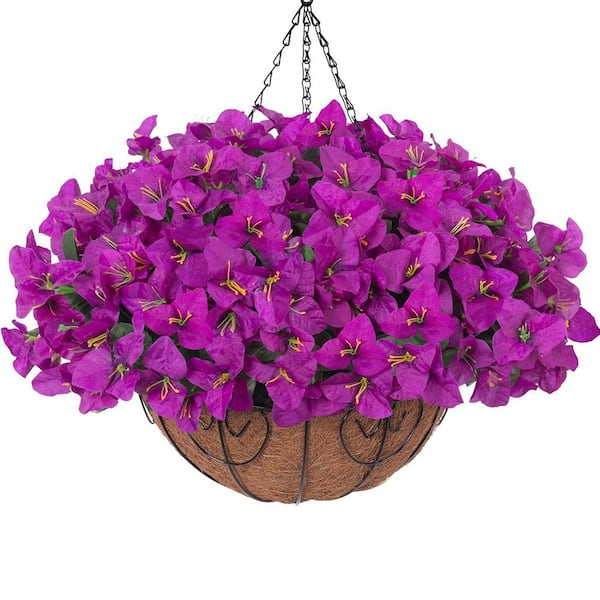 Family Courtyard:19 in.H x 15.7 in. W Purple Artificial Bougainvillea with Hanging Baskets