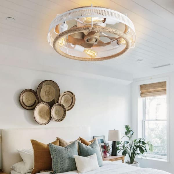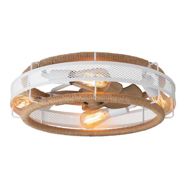 Fan Blade 14.96 in. 19.7 in. Indoor White Bohemian Hemp Rope Ceiling Fan Light, Bulb Not Included, with Remote Control