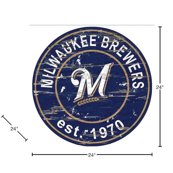 MLB Milwaukee Brewers 24 in. Distressed Wooden Wall Art Circle Sign