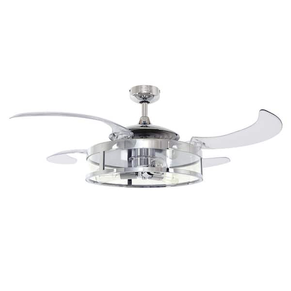 Classic Indoor Chrome and Clear Retractable 4-blade 48 in. AC Ceiling Fan with Light Kit and Remote Control