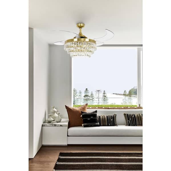 Veil 48 in. Indoor Gold Retractable Blades Ceiling Fan with Light and Remote Control