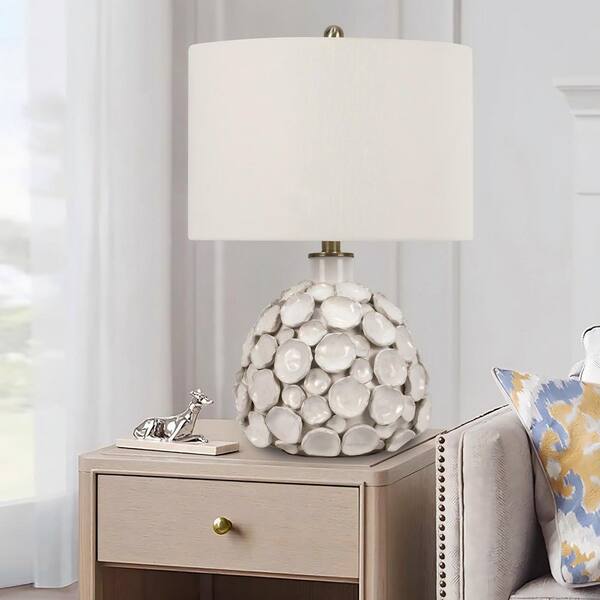 22 in. Reactive White Coral Reef Shell Ceramic Table Lamp with Designer Shade