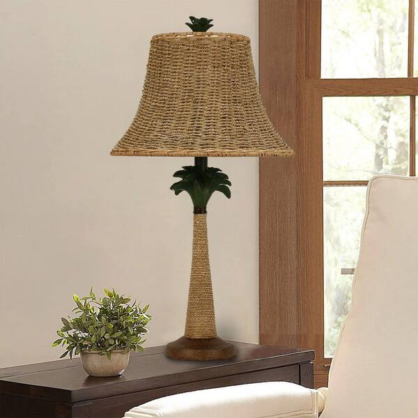 25 in. Natural/Green Pineapple Cast Table Lamp with Designer Rattan Shade