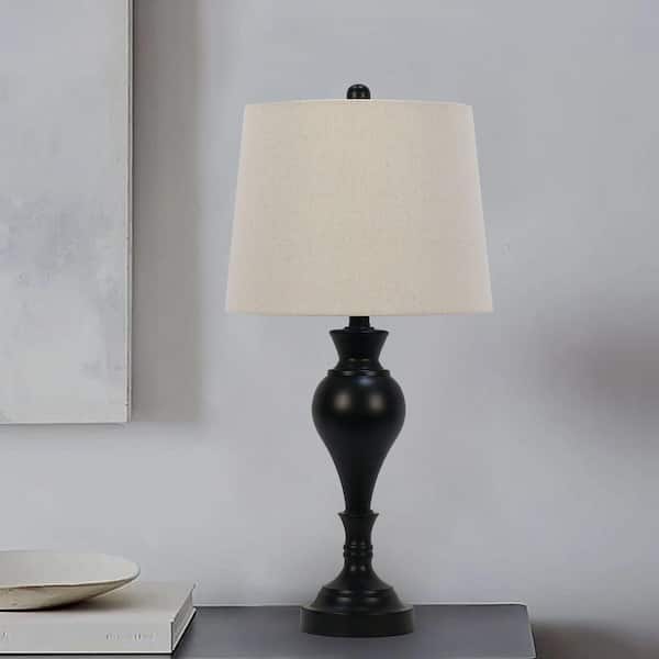 26.5 in. Satin Black Metal Urn Table Lamp w/USB and Designer Shade