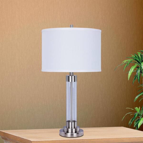 28 in. Brushed Steel Metal and Clear Glass Table Lamp
