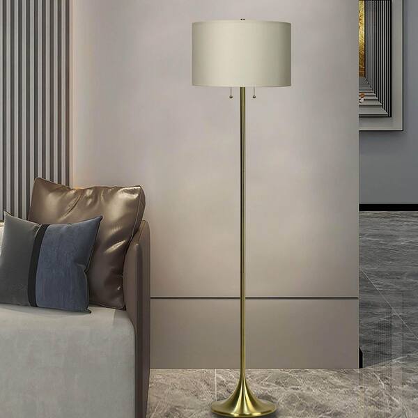 66" Soft Gold Metal Column Floor Lamp with Designer Shade