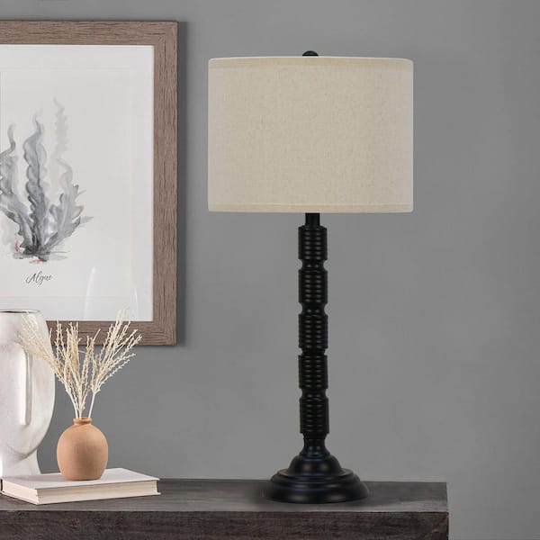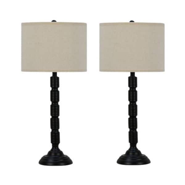 Pair of 30.25 in. Satin Black Industrial Ribbed Metal Column Table Lamps with Designer Shades
