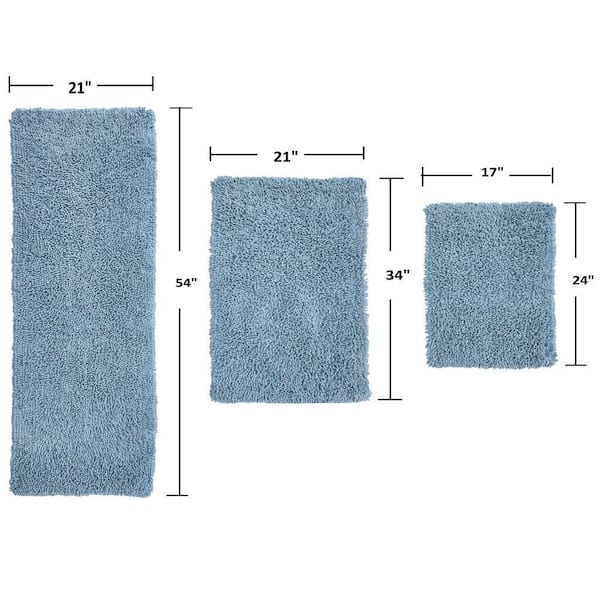 Fantasia Bath Rug 100% Cotton Bath Rugs Set, 3-Pcs Set with Runner, Blue