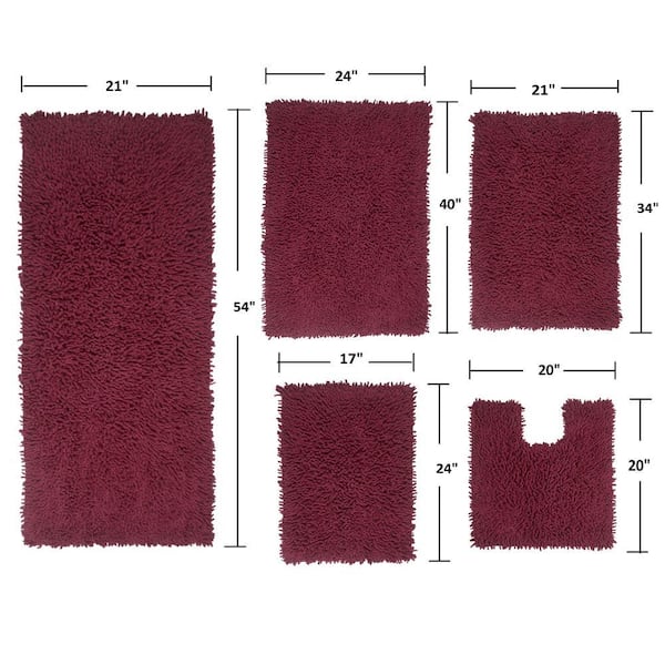 Fantasia Bath Rug 100% Cotton Bath Rugs Set, 5-Pcs Set with Contour, Red