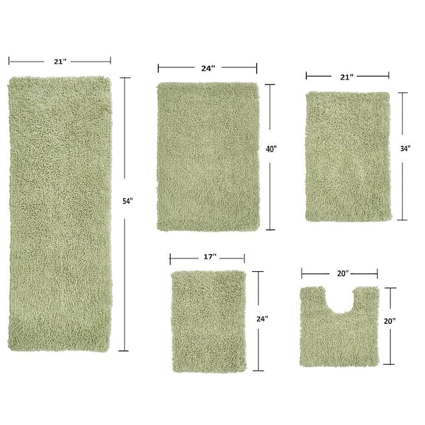 Fantasia Bath Rug 100% Cotton Bath Rugs Set, 5-Pcs Set with Contour, Sage