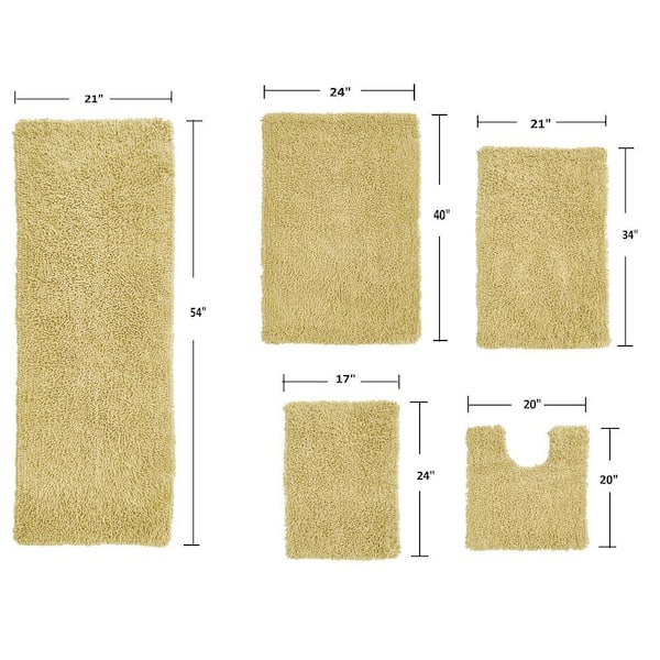 Fantasia Bath Rug 100% Cotton Bath Rugs Set, 5-Pcs Set with Contour, Yellow