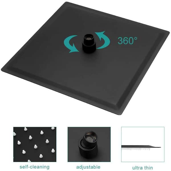 1-Spray Patterns 12 in. Wall Mount Rain Fixed Shower Head, 1.8 GPM Square Shape Head Shower in Matte Black