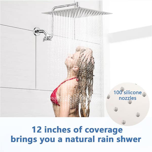 1-Spray Patterns with 2 GPM 12 in. Wall Mount Rain Fixed Shower Head with Adjustable Extension Arm in Chrome