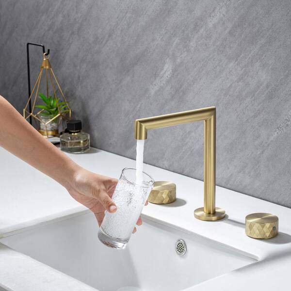 3 Hole Deck Mount Double Handle 360 ° Bathroom Faucet Modern Bathroom Faucet in Brushed Gold