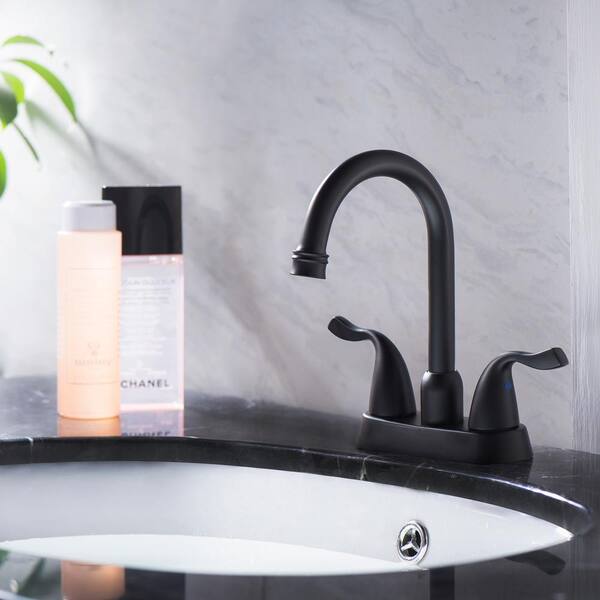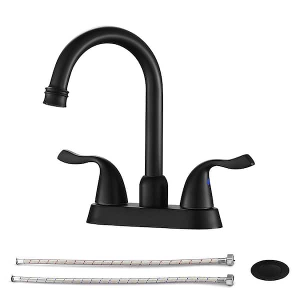 4 in. Centerset Double Handle High Arc Bathroom Faucet with Drain Kit Included in Matte Black