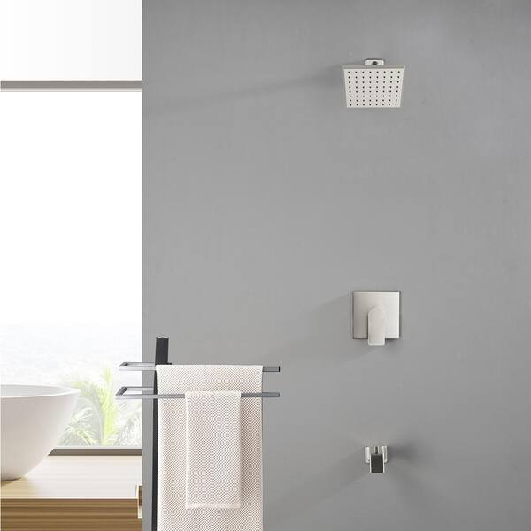 Single Handle 2-Spray Tub and Shower Faucet, Head Shower with Tub Shower with 1.8 GPM in. Brushed Nickel Valve Included