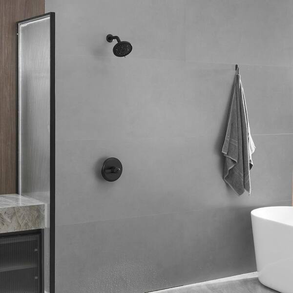 Single Handle 8-Spray Patterns Shower Faucet 2.5 GPM, Wall Mount 5.5 in. Wall Mount Fixed Shower Head in Matte Black