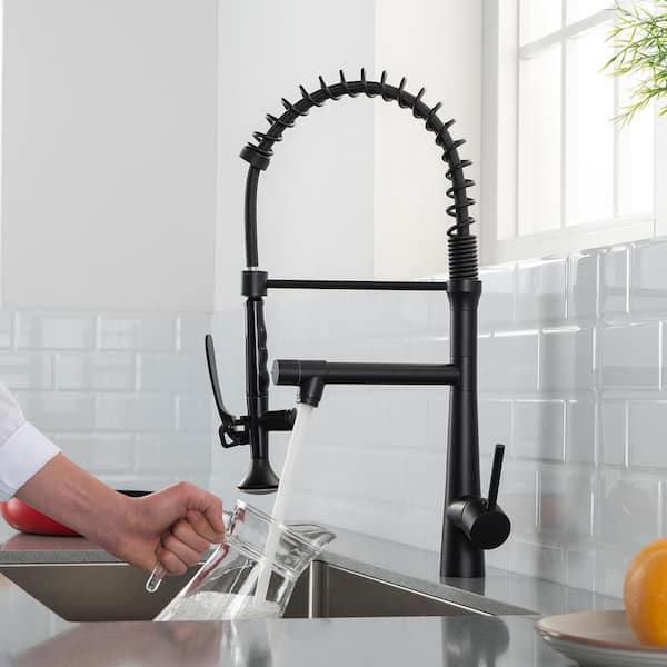 Single-Handle Pre-Rinse Spring Pulldown Sprayer Kitchen Faucet with Power Clean in Matte Black