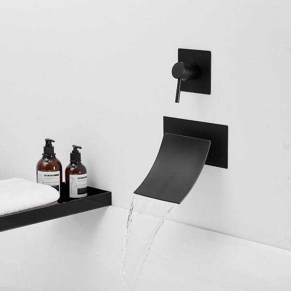 Single-Handle Wall Mount Roman Tub Faucet, Waterfall Wide Spout Bathroom Faucet in. Matte Black
