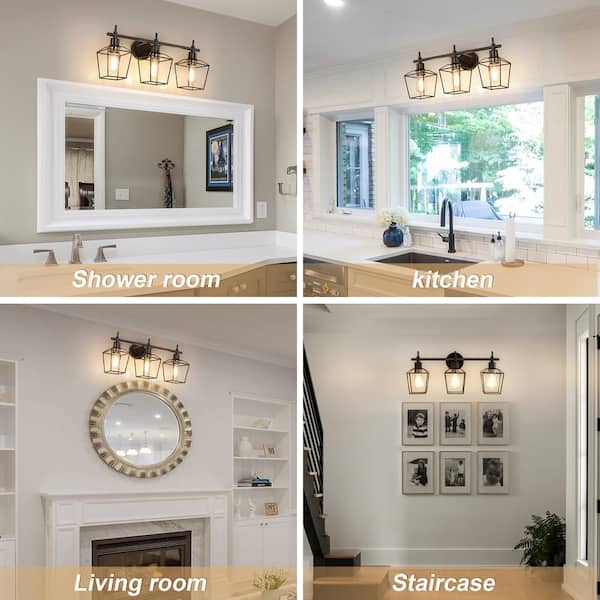 Farmhouse 23.22 in. 3-Light Black Bathroom Vanity Light with Wire Cage