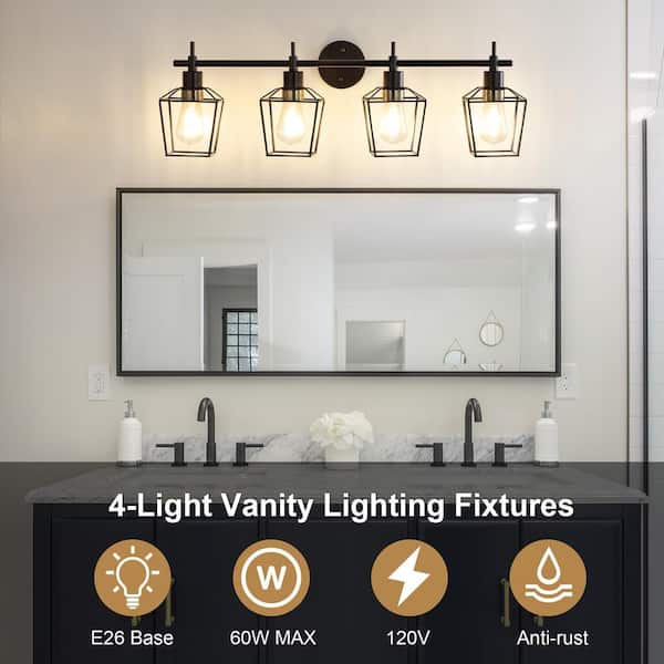 Farmhouse 32.28 in. 4-Light Black Bathroom Vanity Light with Wire Cage