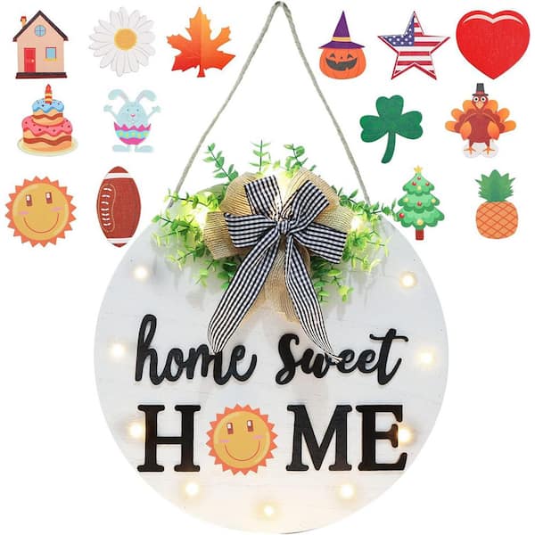 Farmhouse Interchangeable Welcome Decor 12 in. x 12 in. White by Wooden Wall Art