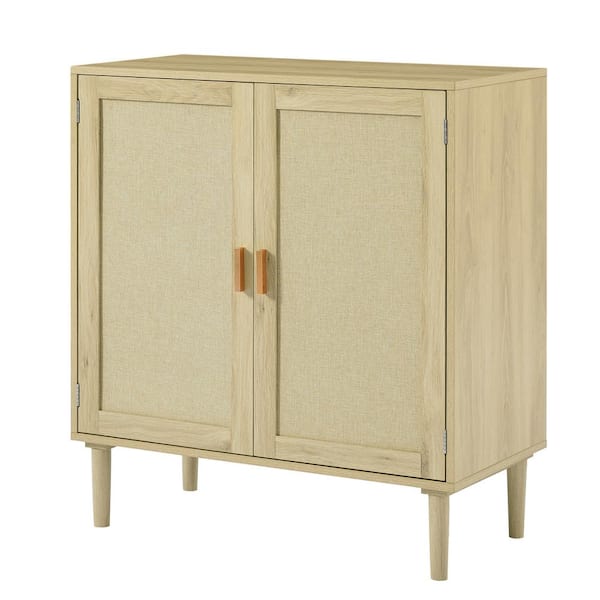 Farmhouse Natural Kitchen Storage Cabinets with Rectangle Rattan Decorative Doors, Cabinet Console Tables, Wine Cabinets