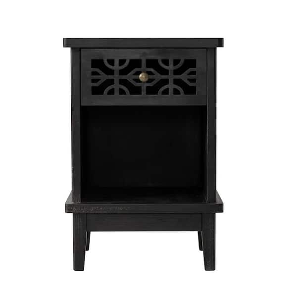 Farmhouse Solid Wood 1-Drawer Black Nightstand with Open shelf 17.75 in. L x 15.75 in. W x 26 in. H